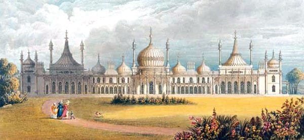 Exterior view, Royal Pavilion from John Nash’s Views of the Royal Pavilion (1826) Public domain